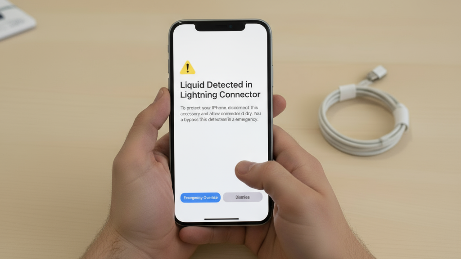 If you’ve ever seen the dreaded “Liquid Detected in Lightning Connector” alert on your iPhone, you already know the mix of panic and confusion it creates. One moment you just want to charge your phone, the next you’re faced with a warning that makes you wonder if plugging in will fry your device. Apple gives you the option to tap Emergency Override, which feels tempting when your battery is nearly dead. But here’s the real question: should you trust that override, or are you risking permanent damage?