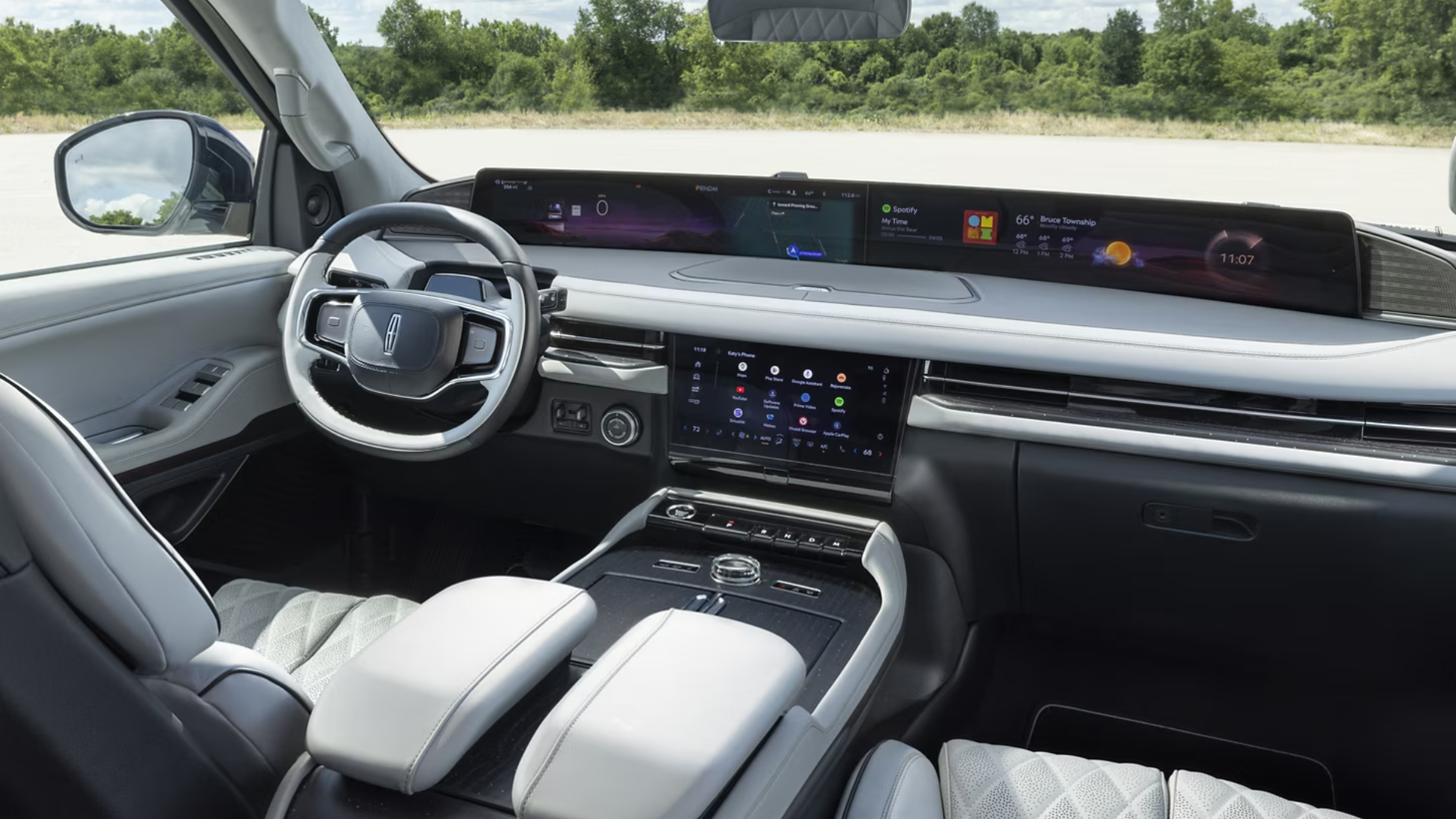 What caught my attention immediately is the 48-inch panoramic display that stretches across the dash. Lincoln calls it the Digital Experience, and it basically merges driver info, navigation, and entertainment in one sleek screen.